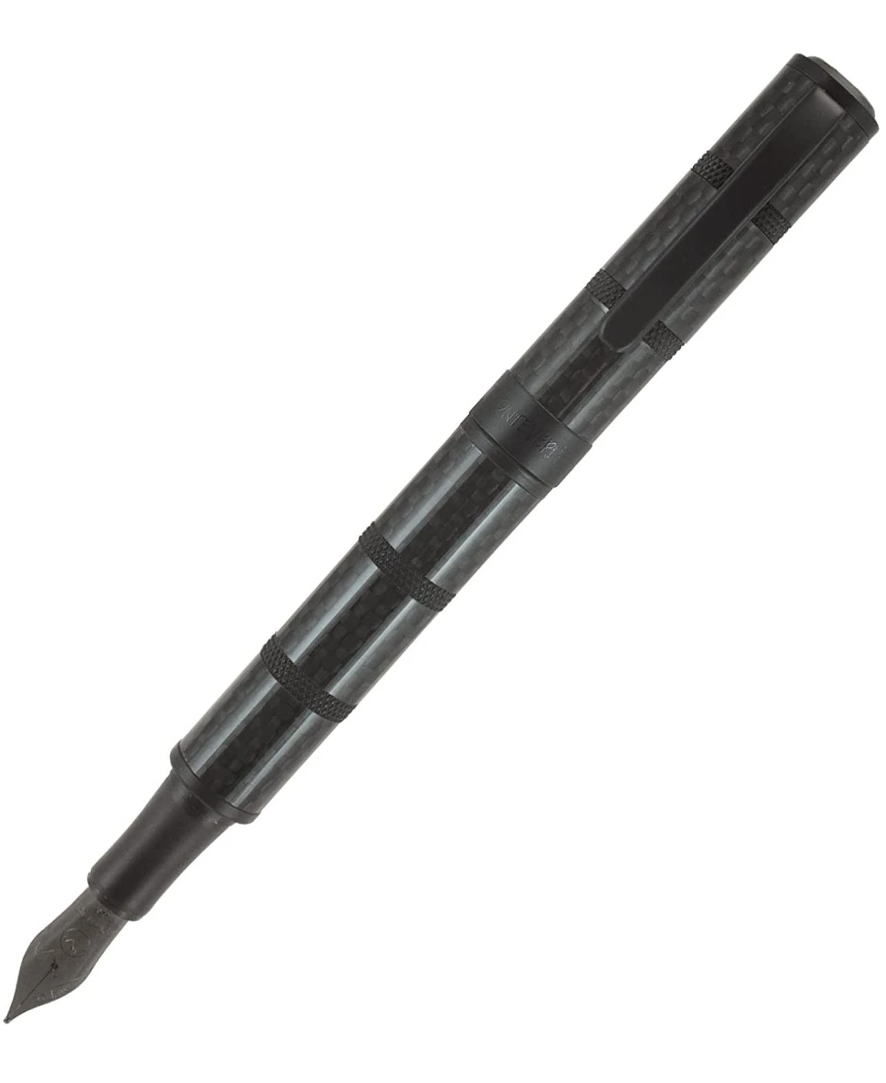The Monteverde Regatta Sport features black trim and black carbon fiber bands between segments of matte black rings. Innovation comes with the new magnetic closure for both capping and posting the fountain and rollerball pens.